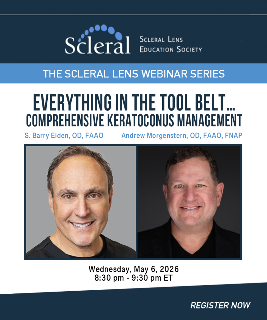This one-hour lecture will review recent publications concerning scleral lenses, focusing on those that were published in the past year and including research related to ocular physiology and health related to scleral lens wear, as well as case series and clinical research.